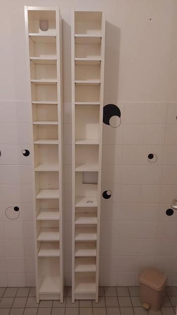 Small en hoog wit kastje (2). Ideaal voor de badkamer of als cd rek. Afmetingen: 20 x 17 x 202 cm (lxdxh). Het kastje is in gebruikte staat, maar nog prima te gebruiken. Gratis af te halen in uden.