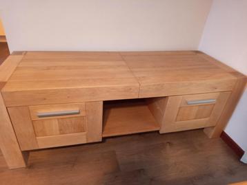 Gratis eiken tv meubel, met 2 kleppen. 163B x 60d x 59h is recent behandeld met 3 lagen osmo-wax voor een mooie en vlek bestendige afwerking. Mag hier weg wegens veranderen indeling.