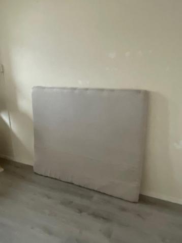 Zelf gemaakt en bekleed. Heel eenvoudig zelf te bekleden door nieuw stof te kopen en erom heen te nieten aan de achter kant. Het is 155 breed en hoog weet ik niet maar je hoeft hem dus niet op te hang