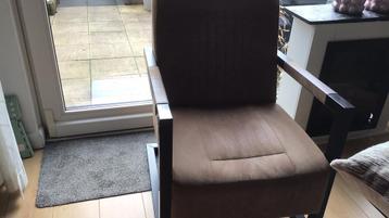 2 fauteuils,makkelijk afneembare stof ivm vlekken. Zware stoelen. Kunnen makkelijk nog een tijd mee.