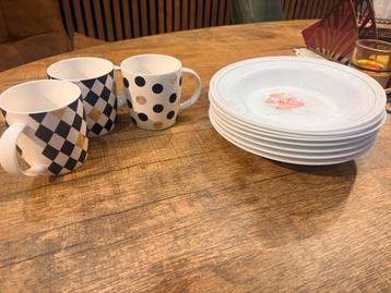 8 borden en 3 koffie/ thee kopjes die prima zijn om nog gebruikt te worden. Mag gratis opgehaald worden.