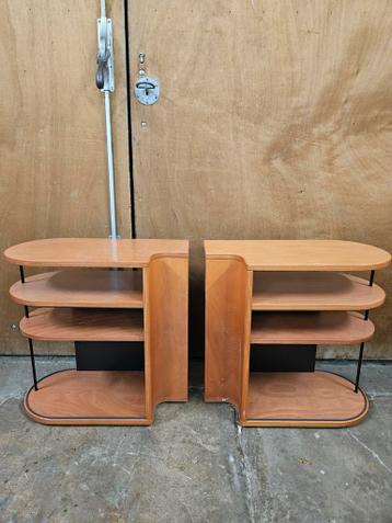 Set van twee auping nachtkastjes. De kastjes zijn in goede staat (lichte gebruikerssporen) en hebben een uniek design met open planken. Ideaal voor naast het bed om boeken, een lamp of andere spullen
