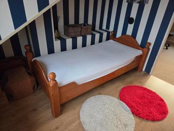 Grenen éénpersoonsbed, afmetingen matras 90x200cm inclusief niet-verstelbare lattenbodem eventueel inclusief matras. Interesse? Bel gerust maar niet op zondag.