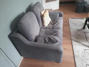 Grijze tweepersoonsbank in gebruikte staat. De bank is van stof. Ideaal voor een kleine woonkamer of appartement. Breedte tussen 150 en 200 cm. Diepte tussen 75 en 100 cm.