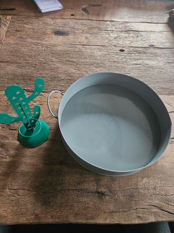 Gratis metalen dienblad en metalen kaarsenhouder.
