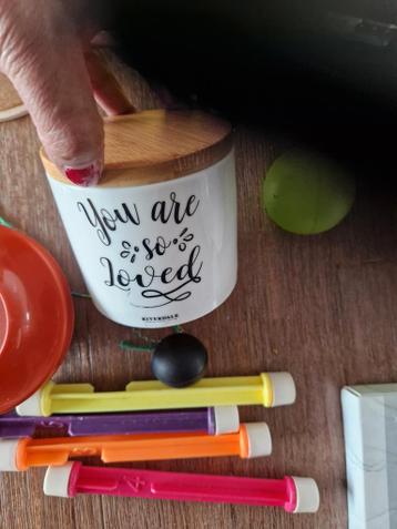 Mooie riverdale kaars houder met houten deksel. In goede staat. Ideaal voor het toevoegen van sfeer aan je interieur.