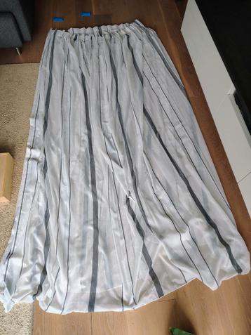 Set van twee vitrage gordijnen met grijze strepen. Afmetingen: hoog 280 cm, breed 220 cm