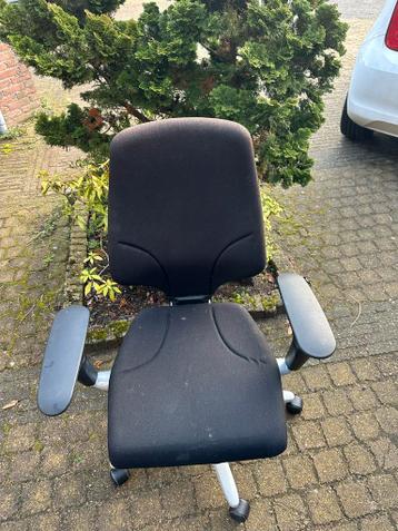 Deze zwarte bureaustoel is in gebruikte staat, maar nog steeds comfortabel en volledig functioneel. De stoel is verstelbaar in hoogte en heeft armleuningen. Ideaal voor thuiswerken of op kantoor. De s