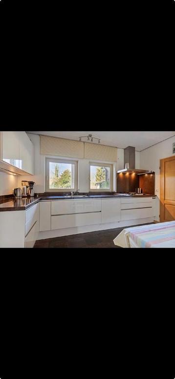 Keuken zonder aanrechtblad. De keuken is ongeveer 400cm lang en de kasten zijn 60cm diep. Er zijn twee hoge kasten met een oven, deze zijn 120cm breed, 60cm diep en 180cm hoog. Let op: exclusief aanre