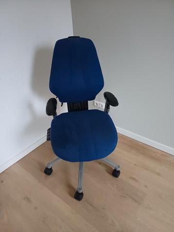 Comfortabele blauwe bureaustoel. Verstelbaar in hoogte en met armleuningen. In prima staat, ideaal voor thuiswerken of studeren.