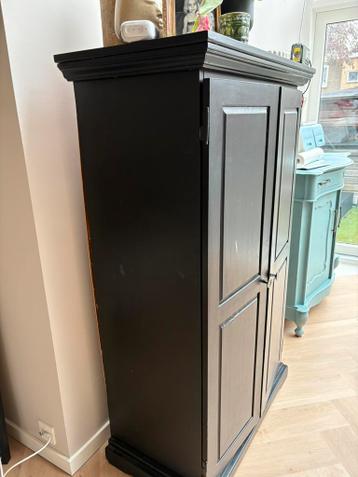 Zwart geverfde kast. Moet wel opnieuw likje verf krijgen. Hoogte 150cm breedte 95cm diepte 53cm