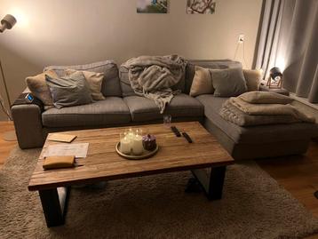 Gebruikte bank, van ikea. Kleur grijs. In 2 grote delen uit elkaar te halen. Losse kussens zijn de hoezen regelmatig van gewassen. De hoeken (leuningen) kunnen wel een schoonmaak beurtje gebruiken! (K