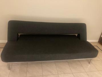 Mooie grijze slaapbank. De bank is in gebruikte staat, maar nog prima te gebruiken. Ideaal voor een studentenkamer of logeerkamer. De bank is makkelijk uit te klappen tot een bed. Afmetingen zijn onge