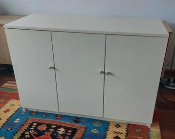 Wit kastje van zwaar mdf hout met 3 deurtjes en 3 niveaus in het kastje. Met spoed gratis op te halen vanwege aanschaf van nieuwe kast. Het kastje heeft aan de bovenkant wat waterschade, maar kan word