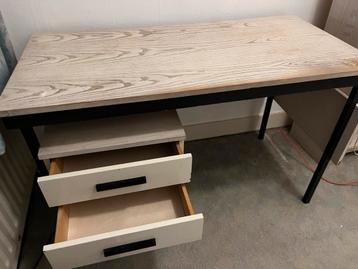 Mooi houten/fineer bureautje met 2 lades. Metalen frame en poten. Gebruikt maar in zeer goede staat. Stevige kwaliteit. Practisch klein formaat. Afmetingen: 120x60x74cm. Ivm verhuizing graag zsm ophal