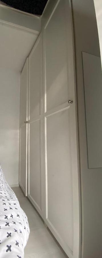 Kledingkast 2.36M hoog en 1.50M breed met verschillende hang- leg mogelijkheden en lades. We hebben de kast zelf alleen verplaatst in onze woning; maar nooit in elkaar gezet en uit elkaar gehaald, dus