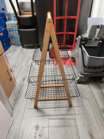 Handige accessoiresmand met 2 etages. Ideaal voor het opbergen van diverse spullen in huis. Gemaakt van metaal en hout. In goede staat.