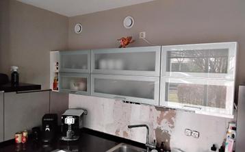 Gratis af te halen 3 bovenkasten uit onze keuken. Met scharnierende klepdeuren. Twee kasten van 60/57/34 cm en één kast van 90/57/34 cm. Netjes maar gebruikt !!!!