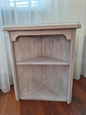Een hoekkastje 70x56cm was ooit onderdeel van een licht eiken kastenwand, zelf geverfd met white wash. Met in hoogte verstelbare plank. Gratis ophalen.
