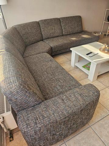 Grote hoekbank 220 bij 225. Gebruikt maar kan nog een ronde mee. Onderkant is het stof weg maar zie je niks van. Hier en daar wat kattenhalen. Maar als je dat weg knipt is er bijna niks van te zien. B
