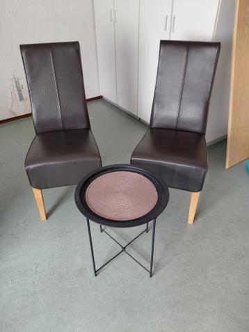 Twee bruine stoelen zien er nog netjes uit en klein tafeltje gratis op te halen van af zaterdag