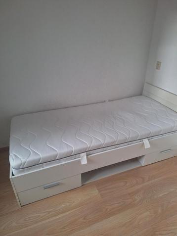 Nog goed 1 persoonsbed te koop met goede stevige lattenbodem en matras met matrasbeschermer