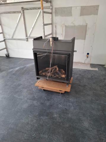 Gaskachel met zwart rookkanaal. Gratis af te halen.