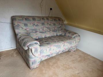 Gratis af te halen: comfortabele lage 2-zitsbank met stoffen bekleding. De bank zit nog prima en kan zeker nog een ronde mee. Ideaal voor een studentenkamer, als extra zitplek of voor iemand met een k