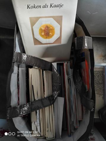 Een tas vol met oude kookboeken voor de liefhebber.
