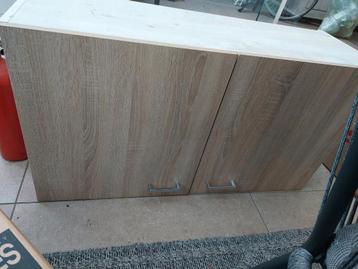 Tweedeurs keukenbovenkastje in grijsgrenen kleur. Afmetingen zijn 100 cm breed, 54 cm hoog en 35 cm diep. Gratis af te halen.