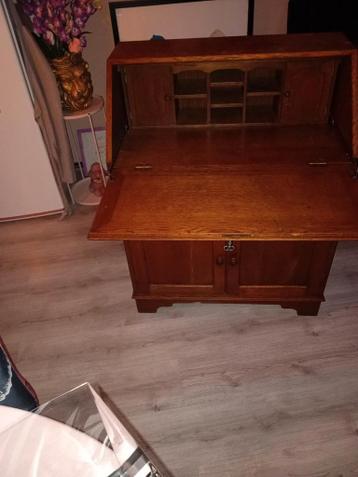 Mooie secretaire in goede staat. Afmetingen: 78 cm breed, 43 cm diep, 100 cm hoog. Met bureau dat 75 cm diep is. Ideaal voor een kleine ruimte of als extra werkplek.