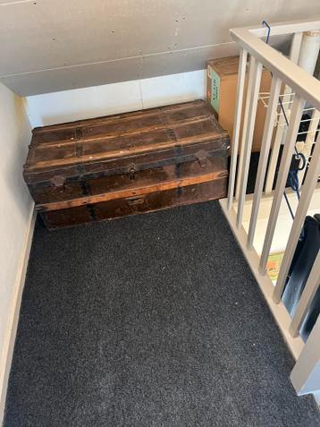 Ijzeren kist met houten beslag. Maat: l 100 cm b 50 cm h 35 cm