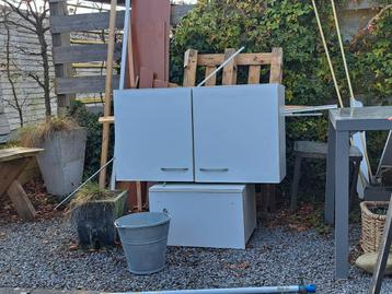 Gratis af te halen: witte aanrechtkastjes. Ideaal voor extra opbergruimte in bijvoorbeeld een schuur of garage. Gebruikte staat, maar nog prima te gebruiken. Afmetingen onbekend, zie foto's.