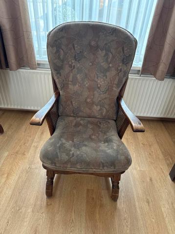 Deze comfortabele tv stoel is perfect om te ontspannen tijdens het kijken van uw favoriete programma's. De stoel heeft armleuningen en is bekleed met stof. De stoel is in gebruikte staat, maar nog