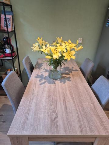 Wij verkopen dit omdat we na onze verhuizing een grotere eettafel hebben gekocht. Gebruikt maar nog netjes. L:160 b:80 h:78 merk jysk tafel samen te koop met de vier stoelen. Mag direct weg.