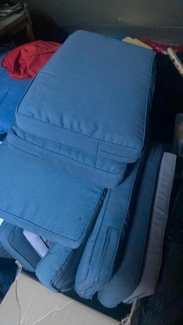 Wegens grote opruiming zolder: een doos tuinkussens voor minimaal 2 (2-zits) tuinbanken. Alles in 1 meenemen, geen uitzoeken. De donkere kussens zijn 2 jaar terug gekocht. De 2 lichtere zijn al ouder,