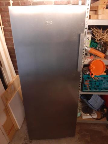 Zilverkleurige beko koelkast rssa290m33x zonder vriesvak. Afmetingen: hoogte 150cm, breedte 59cm, diepte ongeveer 60cm. Er is ijsvorming geweest, waarschijnlijk door een niet goed sluitend rubber, zoa
