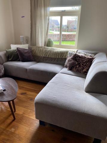 Grijze hoekbank met afmetingen 270 x 190 cm. De bank heeft zichtbare gebruikssporen, maar is nog prima te gebruiken. Gratis op te halen dit weekend!