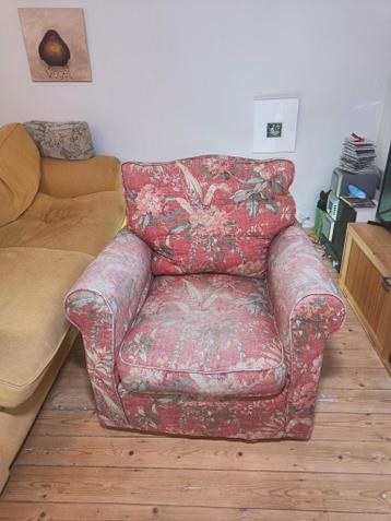 (english below) ik verkoop mijn favoriete stoel! Kenmerken: -groot en comfortabel -staat op wieltjes -op de armleuningen wat schrammen -klassieke weelderige print -charmant gebleekt door de zon de and