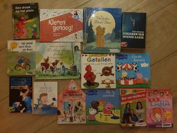 Een verzameling van diverse kinderboeken, waaronder peppa pig, verhalen over een kleine beer, en andere leuke titels. De boeken zi