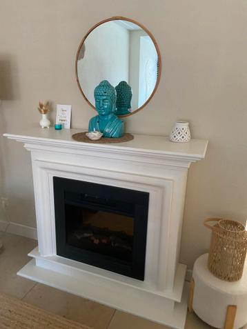 Te koop elektrische sfeerhaard de haard kan ook warmte afgeven hij is in zeer goede staat en het opnieuw geschilderd hoog 1 m breed blad 1.22 M breed haard zelf 1,06 m diep 28,5 cm