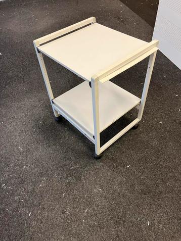 Een handig, verrijdbaar tafeltje, ideaal voor bijvoorbeeld een printer. Het tafeltje heeft twee bladen, waardoor er extra opbergruimte is voor papier.