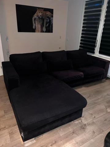 Zwarte hoekbank te koop. De bank is beschadigd en verkleurd, zie foto's. Echter ka hij nog prima een ronde mee! De kussens zijn nog goed en de bank zit heerlijk. Wellicht geschikt voor een student