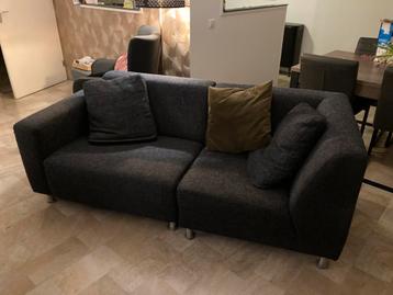 Zwart bankstel bestaande uit 2 losse componenten (horen niet van oorsprong aan elkaar maar dat valt niet erg op) breedte 93 cm hoogte (tot leuning) 62 cm lengte 200 cm totaal zitdiepte 65 cm zithoogte