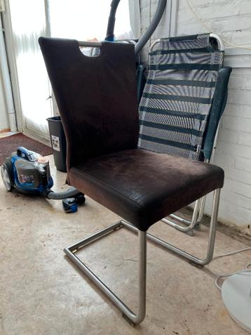 Eetstoel met zachte donkerbruine stof en metalen onderstel staat: gebruikt gratis af te halen voor woensdag 11 maart in twello