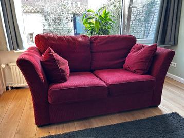 Wie kunnen we blij maken met deze heel fijne bank? Is van bordeaux ribstof, afmetingen 172 cm breed , 92 cm diep. Niet doorgezakt, zit heel lekker. Gaat weg vanwege de aanschaf van een grotere bank.