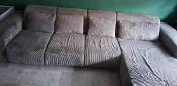 Grote hoekbank, gebruikt door onze honden en op 2 plekken (linkse hoek en rechtse hoek) beschadigd. Niet storend met een dekentje eroverheen. Gratis af te halen, wellicht voor een hondengezin, keet of