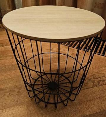 Mooi gratis bijzettafeltje met opbergruimte. Zgan met houten deksel en zwart metalen frame. Afmetingen zijn 42cm hoog en deksel is 40cm in doorsnee.