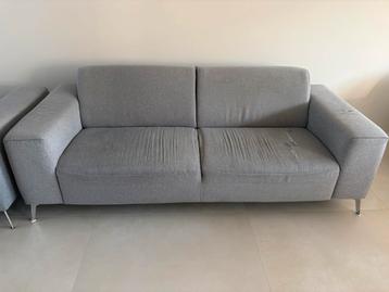 Comfortabele grijze 3-zitsbank. Heeft een scheur in de bekleding, zie foto's. Verder in goede staat.