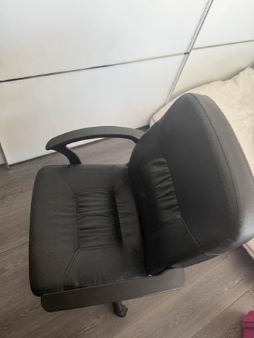 Comfortabele, gebruikte zwarte bureaustoel. Ideaal voor thuiswerken of studeren. De stoel biedt goede ondersteuning. Gebruikssporen aanwezig. Type: bureaustoel. Kleur: zwart.